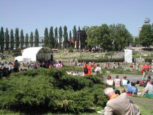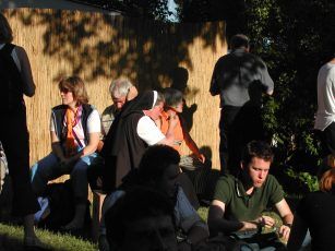Nach dem Abendessen auf einer Messewiese