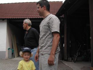 In Wintersdorf angekommen, fuhren wir in das Neubaugebiet unserer Gastgeber und fanden das Haus mit Katrins Hilfe, die auch schon meinte, dass die haushütenden Söhne in Ordnung seien. Die Eltern wussten, dass wir kommen, aber sie vertrauten nicht nur so sehr, dass sie ihre zwei jugendlichen Söhne allein Zuhause lassen, nein, sie erlauben auch uns Fremden, während ihrer Abwesenheit in ihr Haus zu kommen und dort zu übernachten! Weil dies für mich so erstaunlich aber auch beispielhaft für diese Reise ist, stelle ich unten den Zettel aus, der für uns am Kühlschrank hing. Wir fühlten uns willkommen! Die Jungs und einige Freunde trugen mich zum Hauseingang und dann die Treppe zum Schlafzimmer des Älteren, Simon, hinauf. Mit diesem unterhielt ich mich noch eine Weile und erfuhr, dass er gerade von einer mehrmonatigen Südamerikareise zurückgekehrt war. Ich finde das sehr mutig, denn ich habe schon von mehreren Leuten, die diesen Kontinent bereisten, gehört, dass es nicht nur beeindruckend, sondern auch gefährlich gewesen wäre - einige Gringo-Rucksacktouristen wurden überfallen. Ich selbst habe großen Respekt vor Situationen, in denen ich vor einer Gefahr - auch, wenn nur als letzte Option - nicht weglaufen kann!