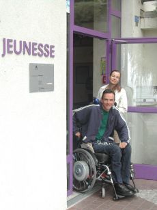 Am Morgen mit Doris im Ausgang der Jugendherberge.
