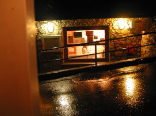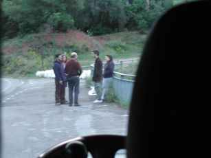 Aus der Telefonzelle heraus fotografiert: Hannelore kauft beim Platzwart eine Tefonkarte für mich. Auch auf dem Heimweg geht die Organisation weiter.