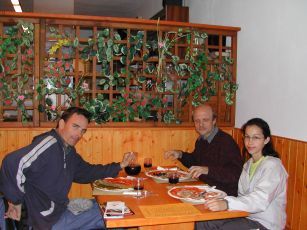 Beim Italiener mit unseren bunten Pizze. Wir sind heute Abend die einzigen Gäste.